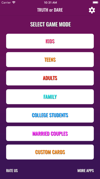 إذا كنت تبحث عن بتعلم بعض الجنون مع لعبة الحقيقة أو جرأة؟ تطبيق Nerve - Truth Or Dare هو تطبيق مجاني متاح لفترة محدودة يعد بجلب المرح إلى هاتفك الذكي. مع الكثير من الحقائق والتحديات المجنونة، يقدم هذا التطبيق أوضاع لعب مختلفة مناسبة لمجموعات مختلفة مثل الأطفال، والمراهقين، والكبار، والأزواج المتزوجين، والعائلات، وطلاب الجامعات. بالإضافة إلى ذلك، يوفر خيار بطاقات مخصصة وهو متوافق مع معظم أجهزة iOS.